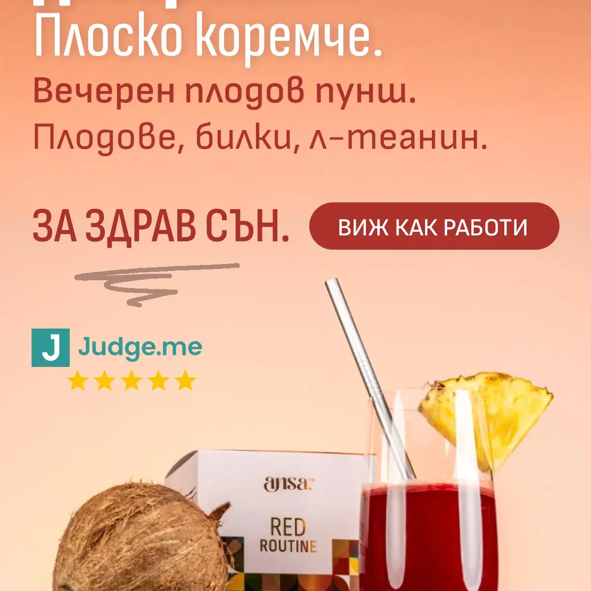Red Routine използва натурални екстракти като маточина, пасифлора и L-theanine – съставки, познати с ролята си в релаксацията и следвечерния комфорт, които не причиняват зависимост, не водят до привикване и не „приспиват“ синтетично.