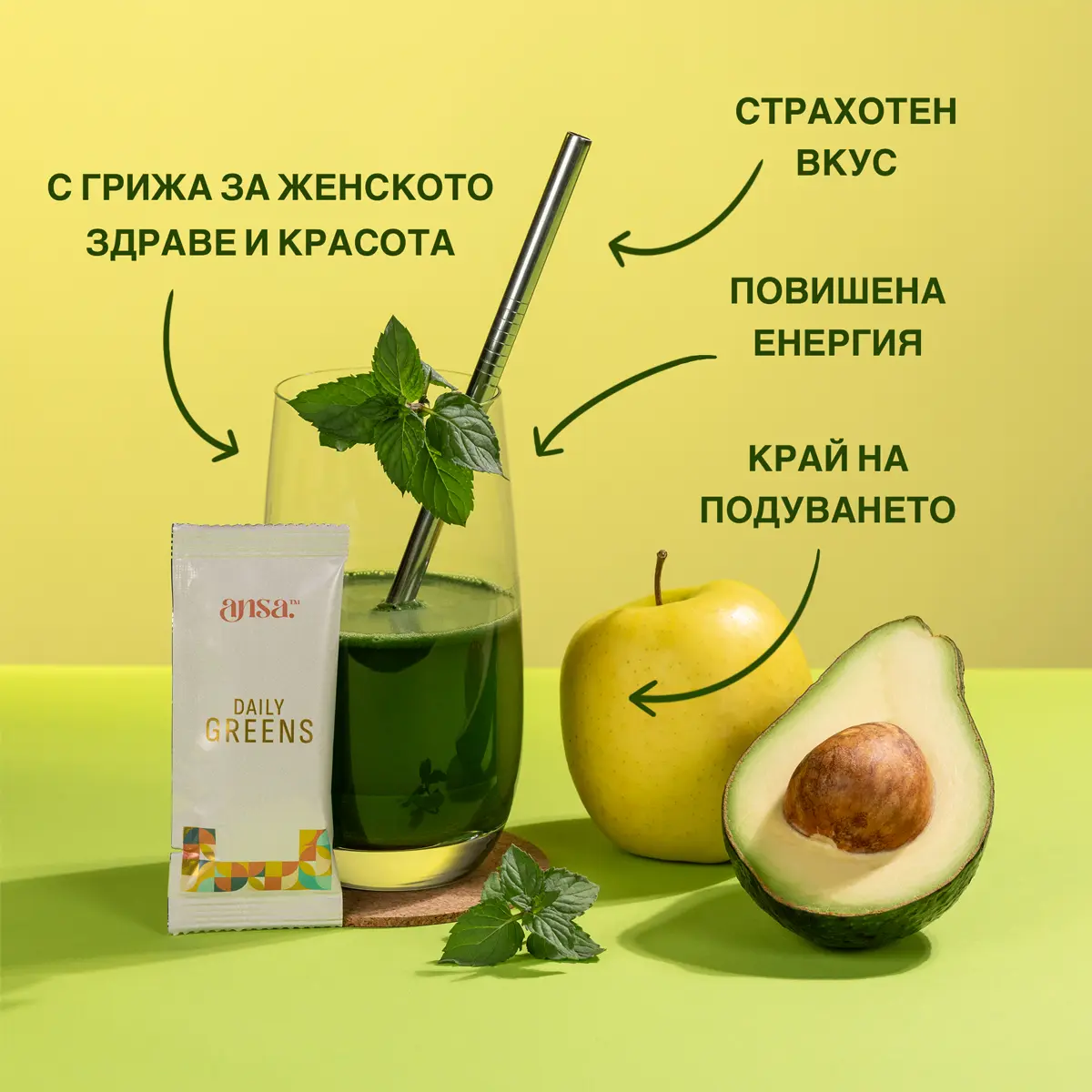 - Повече енергия през деня от Daily Greens — без кофеин и стимуланти