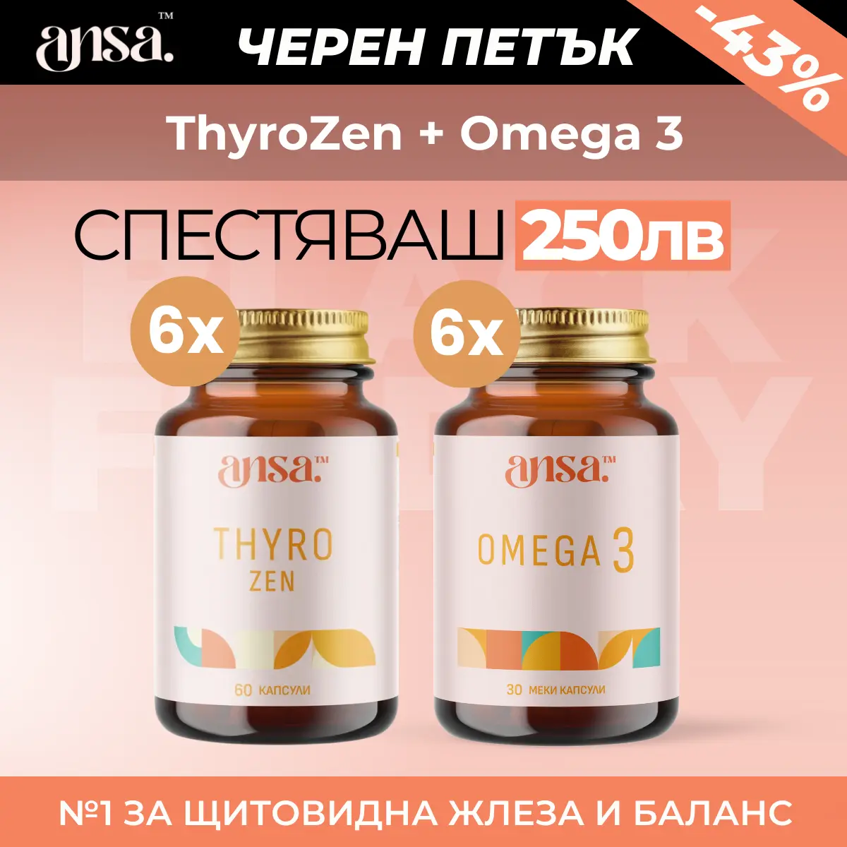 Подкрепи щитовидната жлеза, хормоните и настроението си с най-чистата синергия: ThyroZen (мио-инозитол, цинк, витамин D3, селен) + Omega-3.