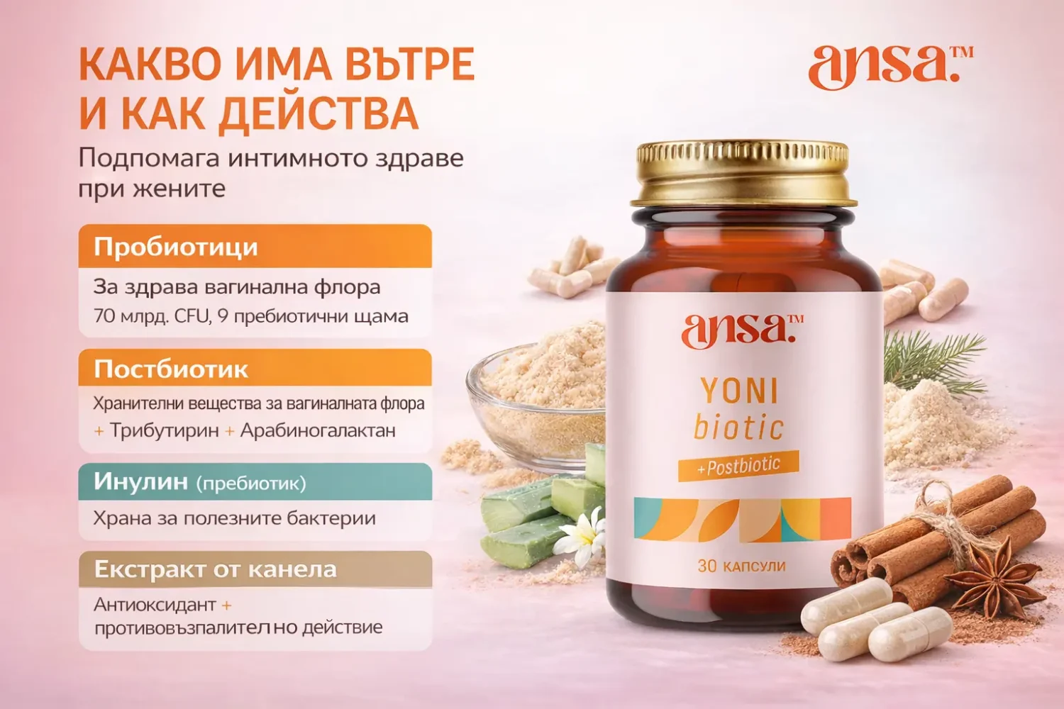 ansa™ – Пробиотик за Жени YoniBiotic 3в1 – 12 щама