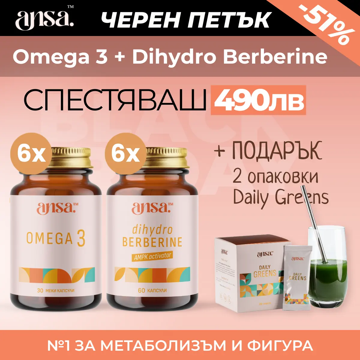 Dihydroberberine е 5 пъти по-ефективен от стандартния берберин и помага за регулиране на кръвната захар, а Omega-3 подпомага хормоните и намалява възпалението.